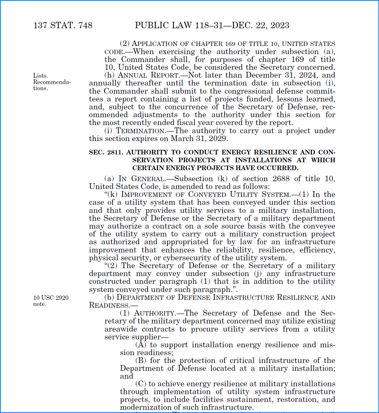 - Utility Energy Services Contract – (10 U.S.C. § 2913)